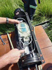 Passagem de fibra óptica, fusões dos capilares, montagem de DIOs, montagem de caixas de emendas internas e externas, aéreas ou subterrâneas.